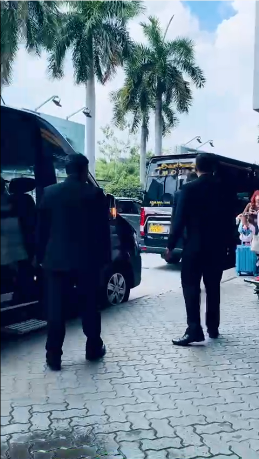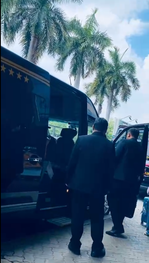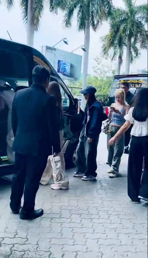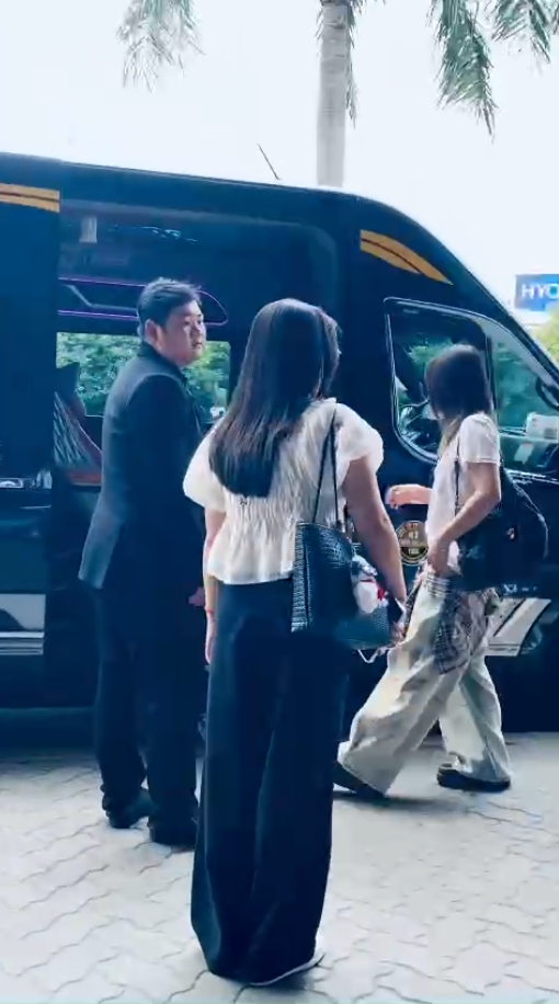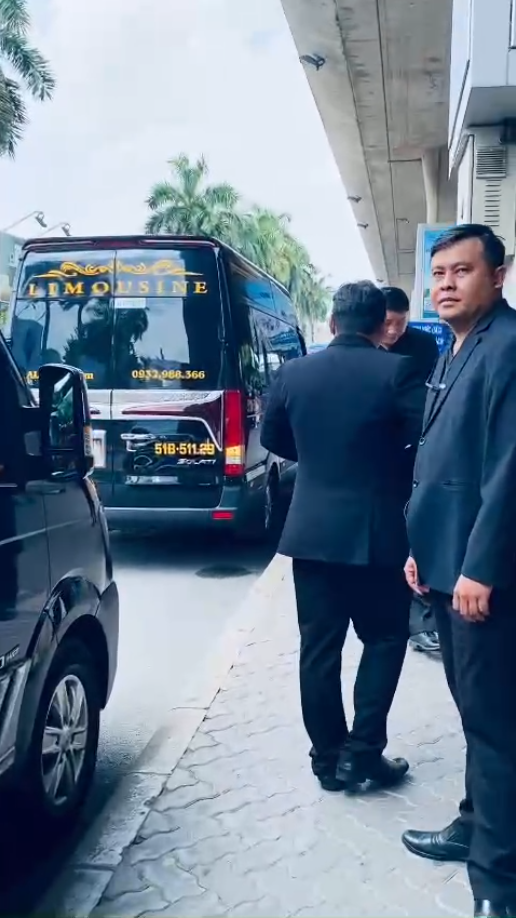 Sau khi nghệ sĩ lên xe, đoàn được hộ tống rời sân bay theo lộ trình kín, hạn chế tối đa ùn tắc hoặc người xấu bám theo.