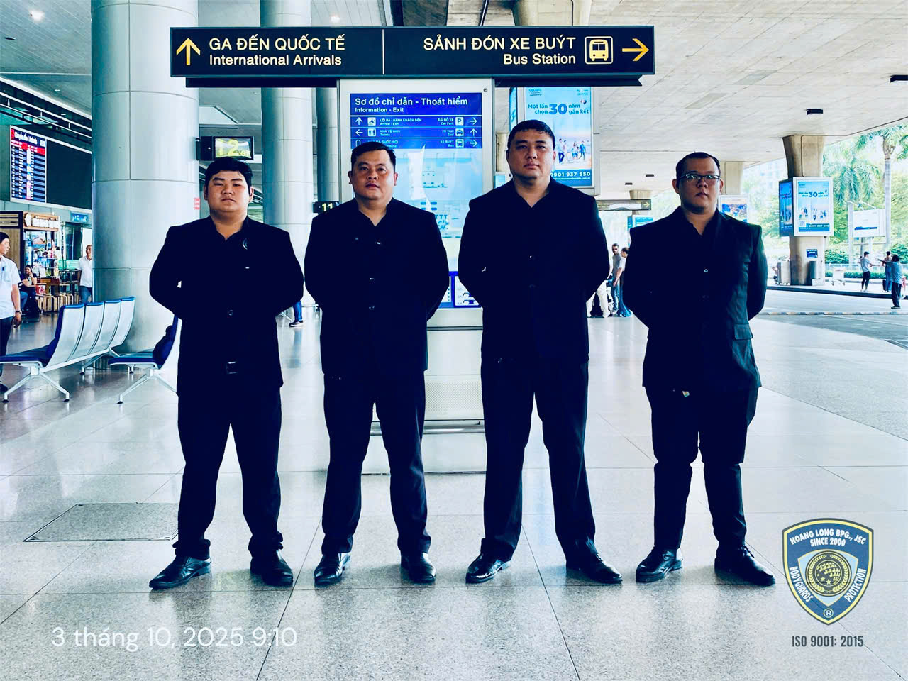 Ngày 03/10/2025, Công ty TNHH Dịch vụ Bảo vệ Hoàng Long tiếp tục khẳng định uy tín và năng lực khi triển khai đội vệ sĩ cấp cao làm nhiệm vụ đón – bảo vệ – dẫn đoàn cho hai nhóm nghệ sĩ hàng đầu Thái Lan: 4EVE và ATLAS tại Sân bay Quốc tế Tân Sơn Nhất, TP. Hồ Chí Minh.